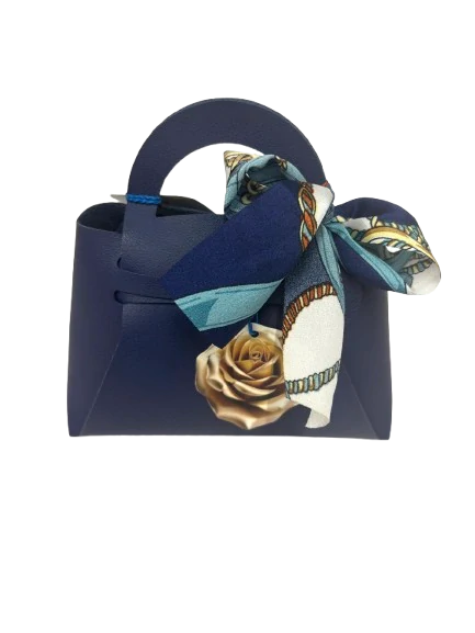 Kabelka z umelej kože obsahuje zlaté vrecko plné čokoládových praliniek od Talianskeho výrobcu MAITRE TRUFFOUT, pralinky sú samostatne balené v lesklej fólii, mix príchutí lieskovo-orieškové, kávové a mliečne. Balenie obsahuje 100g praliniek. Rozmery balenia V/Š/H 12cm / 11cm / 6cm.