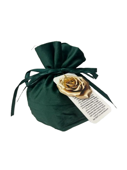 Čokoládové pralinky v saténovom mešci od Talianskeho výrobcu MAITRE TRUFFOUT, samostatne balené vo farebnej fólii, mix príchutí lieskový oriešok, káva a mlieko. Balenie obsahuje 200g praliniek. Rozmery balenia V/Š/H 14cm / 10cm / 10cm.