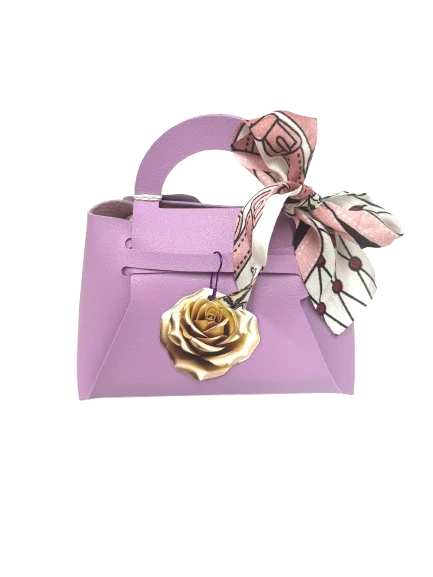 Kabelka z umelej kože obsahuje zlaté vrecko plné čokoládových praliniek od Talianskeho výrobcu MAITRE TRUFFOUT, pralinky sú samostatne balené v lesklej fólii, mix príchutí lieskovo-orieškové, kávové a mliečne. Balenie obsahuje 100g praliniek. Rozmery balenia V/Š/H 12cm / 11cm / 6cm.