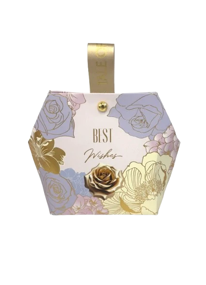 Papierové balienie BEST Wishes obsahuje čokoládové praliniek od Talianskeho výrobcu MAITRE TRUFFOUT, samostatne balené v lesklej fólii, mix príchutí lieskovo-orieškové, kávové a mliečne. Balenie obsahuje 75g praliniek. Rozmery balenia V/Š/H 14cm / 12cm / 5cm, celková hmotnosť 100g.