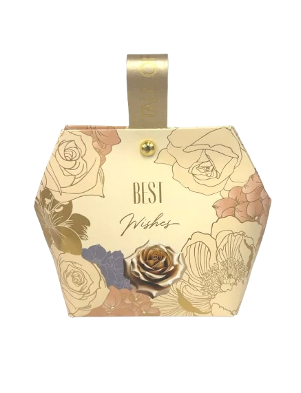 Papierové balienie BEST Wishes obsahuje čokoládové praliniek od Talianskeho výrobcu MAITRE TRUFFOUT, samostatne balené v lesklej fólii, mix príchutí lieskovo-orieškové, kávové a mliečne. Balenie obsahuje 75g praliniek. Rozmery balenia V/Š/H 14cm / 12cm / 5cm, celková hmotnosť 100g.